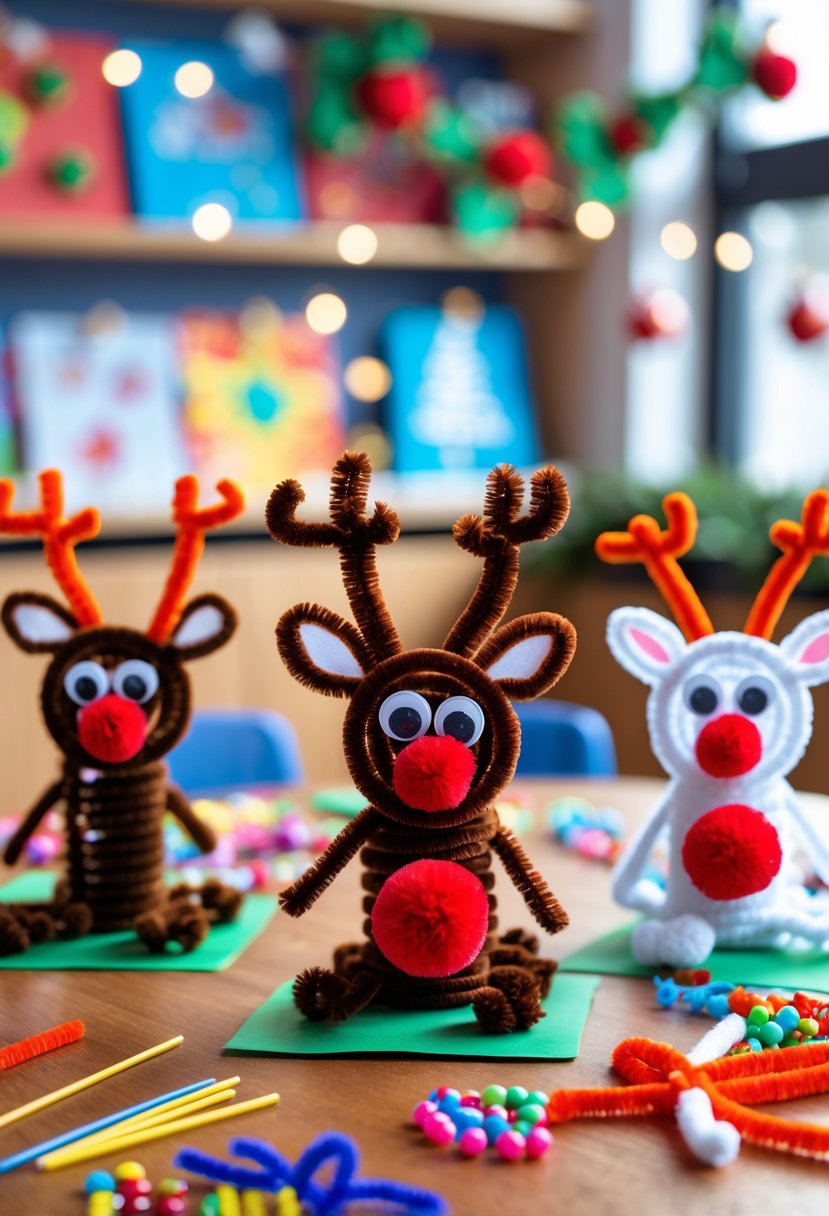 I like using pipe cleaners to make reindeer crafts because they are easy to shape. Kids can twist brown pipe cleaners into antlers and add small pom-poms for noses.