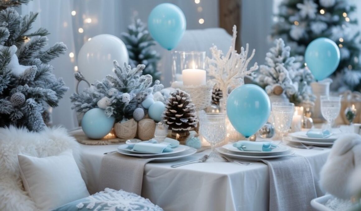 1. Winter Wonderland Theme with Snowy Decor and Twinkling Lights